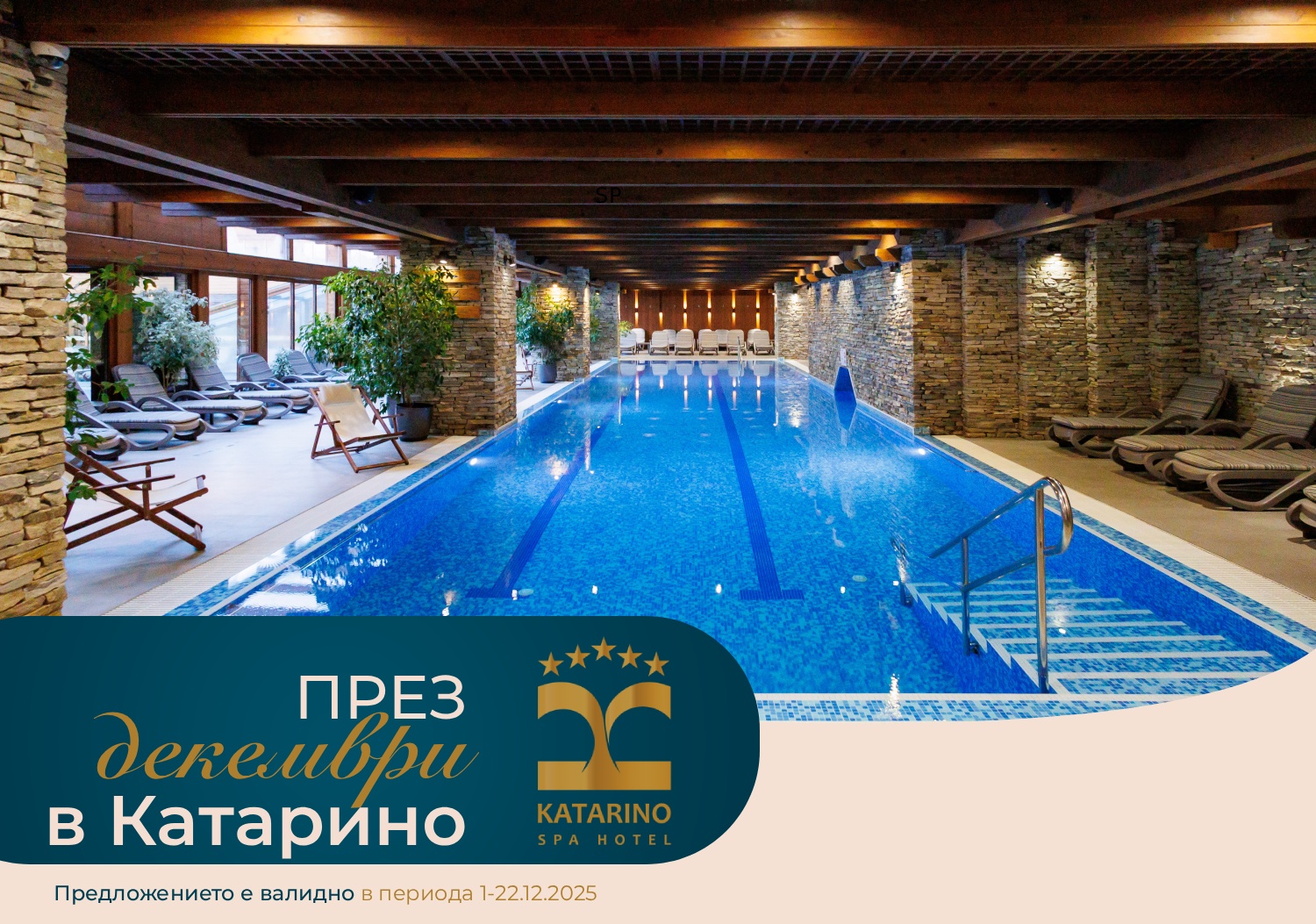 - Безплатен достъп до термалната зона в СПА Център Катарино – външно термално джакузи и вътрешен басейн с лечебна минерална вода с температура 34 градуса, джакузи пещера, солна стая, финландска сауна, кива сауна, инфрачервена сауна, арома парна баня, панорамна парна баня, лакониум, приключенски душове, тепидариум, панорамна релакс зона с открита камина, леден фонтан