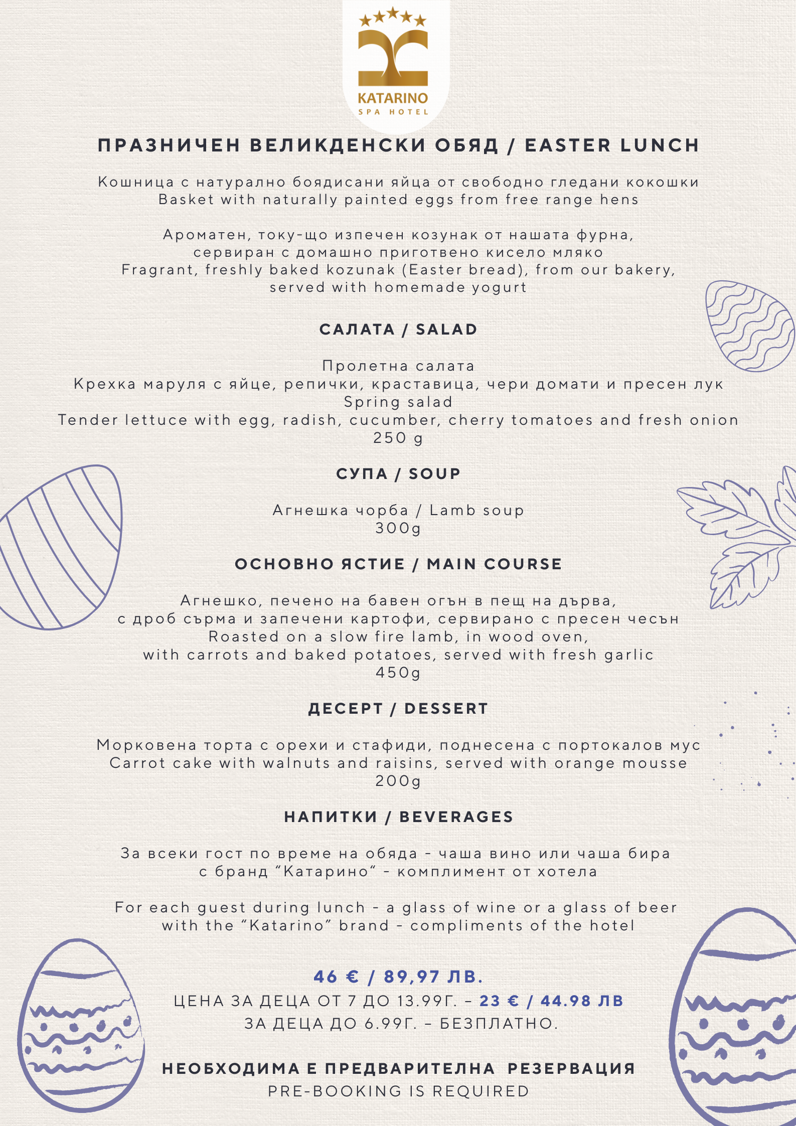 12.04.2026 г. – Празничен великденски обяд (по желание) – Разгледайте менюто